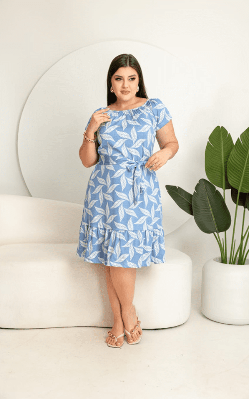Com comprimento na altura do joelho e babado delicado na barra, o modelo traz movimento e feminilidade. A cintura levemente marcada com faixa ajustável valoriza a silhueta, enquanto o tecido leve garante conforto em todas as ocasiões.